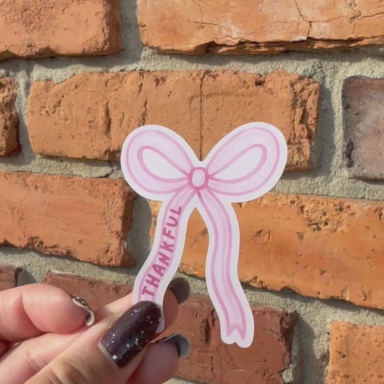 Our Thankful Bow sticker is the perfect reminder to focus on the good in your life. This coquette bow adds a touch of charm to any outfit, while the uplifting message of thankfulness spreads joy and positivity. Stick it on any surface as a beautiful reminder to embrace gratitude and spread kindness.